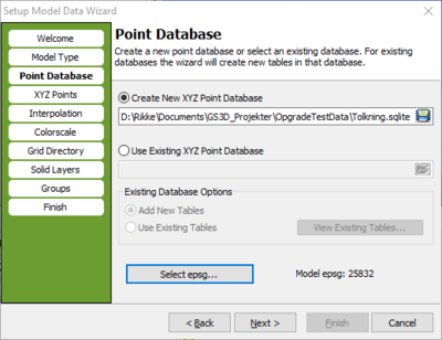 3. Check the “Create New XYZ Point Database” radio button and press the “save” button next to the white box.